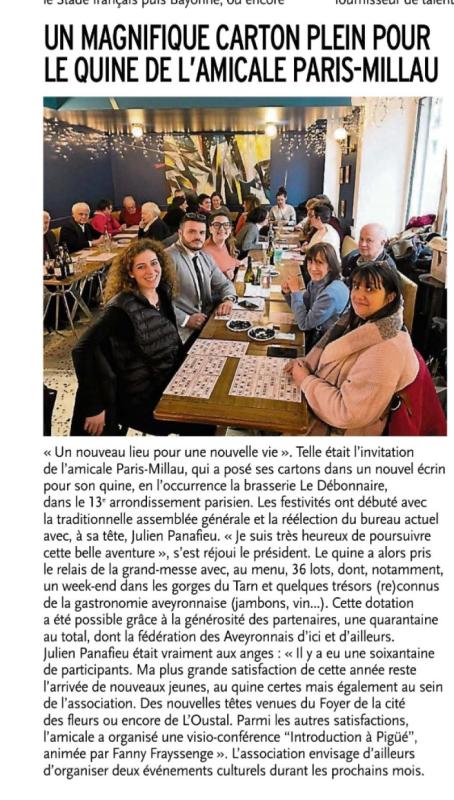 15 Février 2026 : Quine de l'Amicale de Paris Millau - Le quine de l’Amicale Paris-Millau, fait carton plein