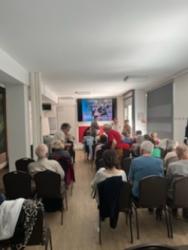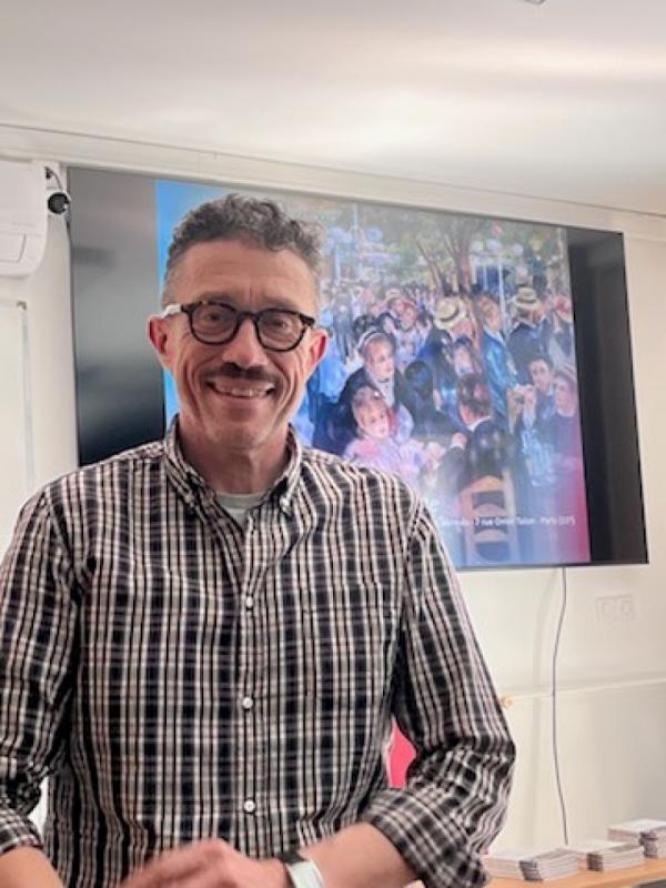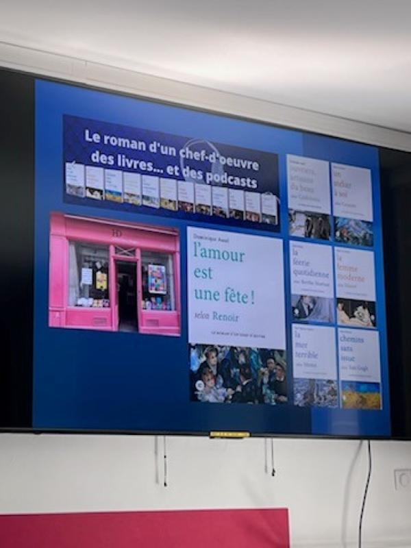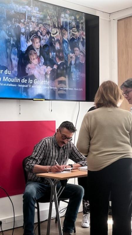 À 14h, la conférence s’est tenue à l’Espace Hermès. Dominique Auzel y a présenté son ouvrage consacré à la vision de l’amour chez Renoir, analysant la manière dont le peintre fait de la fête, du mouvement et de la lumière les vecteurs d’une sensibilité amoureuse singulière. Son intervention, précise et vivante, a suscité un vif intérêt et de nombreuses questions du public.