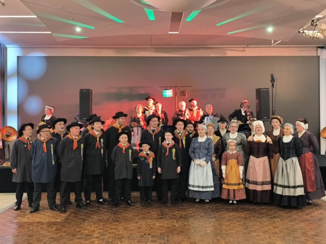 Puis les convives prennent place à table pour la suite du dîner. Thierry Campion, vice-Président, prend le micro pour annoncer l’animation folklorique assurée par la Bourrée Montagnarde, groupe présidé par Sandrine Brun. Le public est attentif et sensible aux danses et chants présentés par Marie-Christine Restellini avec des commentaires toujours instructifs sur le thème de l’Aubrac. Les Pontanels sont très impliqués dans ce groupe avec Thibault, Marie-Paule, Pierre, Thierry sans oublier Julien et Elisa (fils et petite-fille de Martine Gasq). Bravo à tous pour cette prestation.