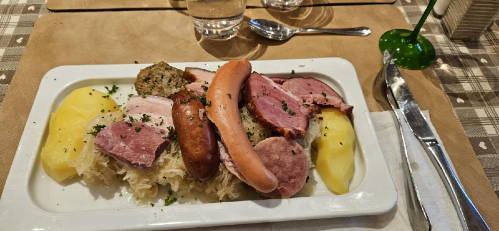 Au menu bien sûr une excellente choucroute mais pas que…Marie-Jeanne et Pascale, deux amies alsaciennes nous présentent Sélestat, ses spécialités et les églises Sainte-Foy et Saint-Georges que nous allons visiter avec des décorations de Noël uniques.