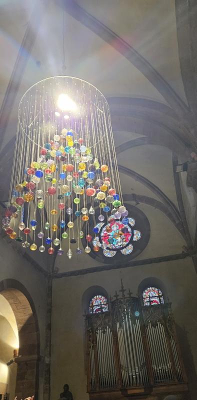 A l’église Sainte-Foy un lustre en boule de Noël de Meisenthal nous impressionne quant à l’église Saint-Georges c’est une exposition de l’arbre de Noël qui attire notre regard avec également dans chacune la traditionnelle crèche.
