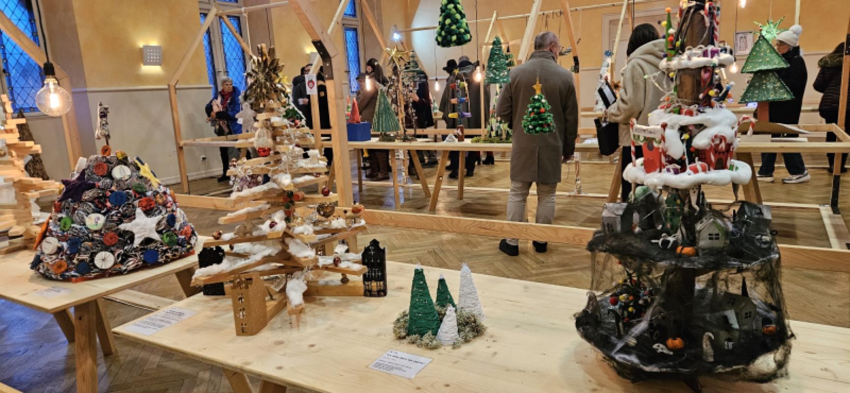 Samedi 6 décembre, jour de Saint-Nicolas que nous apercevons sur l’un des marchés mais il est très sollicité. Une exposition originale de sapins créatifs nous attend à l’intérieur du complexe Sainte-Barbe avec des artisans qui nous présentent leurs dernières réalisations de Noël faites mains. De très belles réussites.