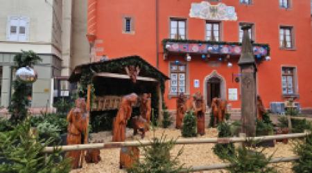 Puis direction Hagueneau pour découvrir notre 2ème marché de Noël. Une agréable visite malgré la météo un peu trop humide mais les sourires étaient sur les visages en découvrant ce marché avec de très beaux stands en bois, très bien décorés. Des spécialités régionales ont pu être appréciées avec un vin chaud ou un jus de pomme chaud. Plusieurs crèches attirent les promeneurs : en bois sculptée, en porcelaine, en Playmobil et enfin une appelée « La crèche du vieux Paris ».