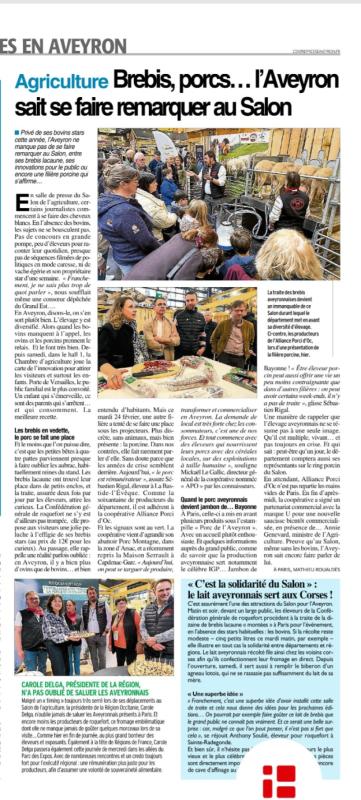 Article paru dimanche 22 février 2026 dans l'Aveyronnais (ci-dessous).