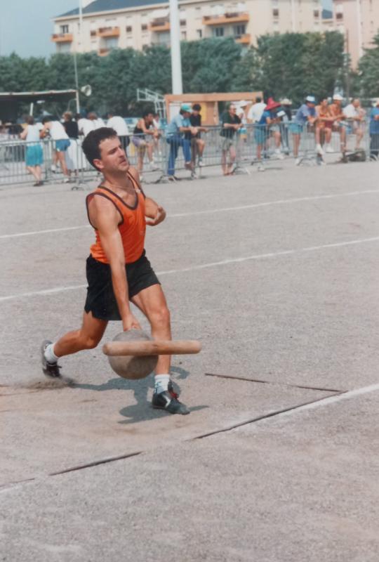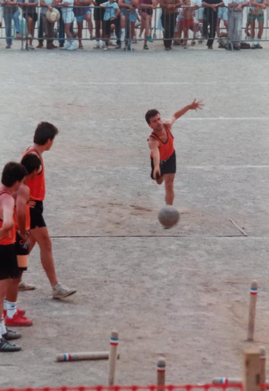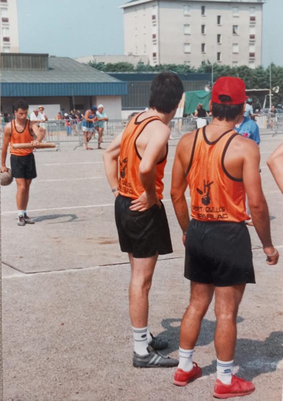 Cheveux poivre et sel, barbe grisonnante, lunette vissée sur le nez, veste zippée.. C’est comme cela que Jérôme Valenq, 58 ans, a reçu sa médaille de chevalier du Mérite Amicaliste pour son dévouement à la promotion des quilles de 8. « Je vois débarquer ma femme, mes deux grands garçons et mes potes : « je me dis, on me prépare quelque chose ». Et c’est « la surprise totale », Gérard Paloc, Président d’honneur de la Fédération des Aveyronnais d’Ici et d’Ailleurs, brosse le portrait de l’Huparlacois avec des anecdotes recherchées. Tout commence, en 1981, lorsque le petit Jérôme, âgé de 11 ans, prend sa première licence dans le club de quille de Laguiole, en minime avec son frère jumeau Hervé. Comme Obélix, son grand-père et son père tombent dans la marmite des quilles de 8, discipline créée à Espalion, lui aussi décide de perpétuer la prophétie familiale. Les joueurs avaient pour habitude de « prendre quille », c’est-à-dire qu’ils devaient saisir l’une des neufs quilles restées debout pour la frapper à l’aide de la boule.