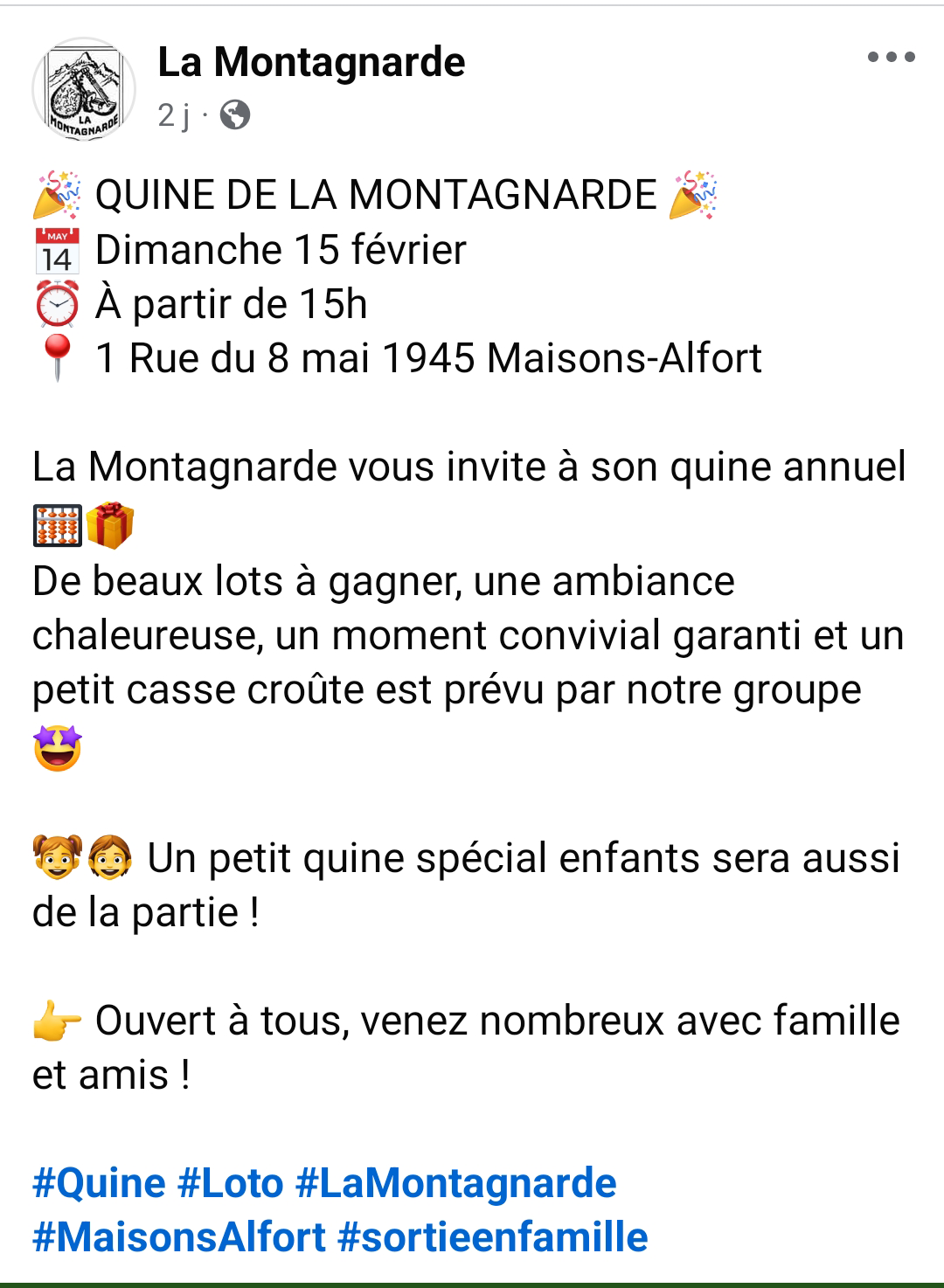15 février 2026 : Groupe Folklorique La Montagnarde - QUINE