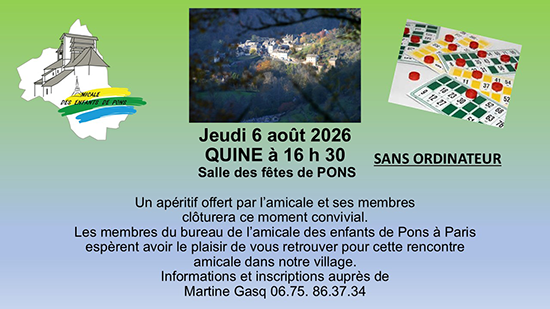 6 août 2026 - Amicale des Enfants de Pons - QUINE à 16h30