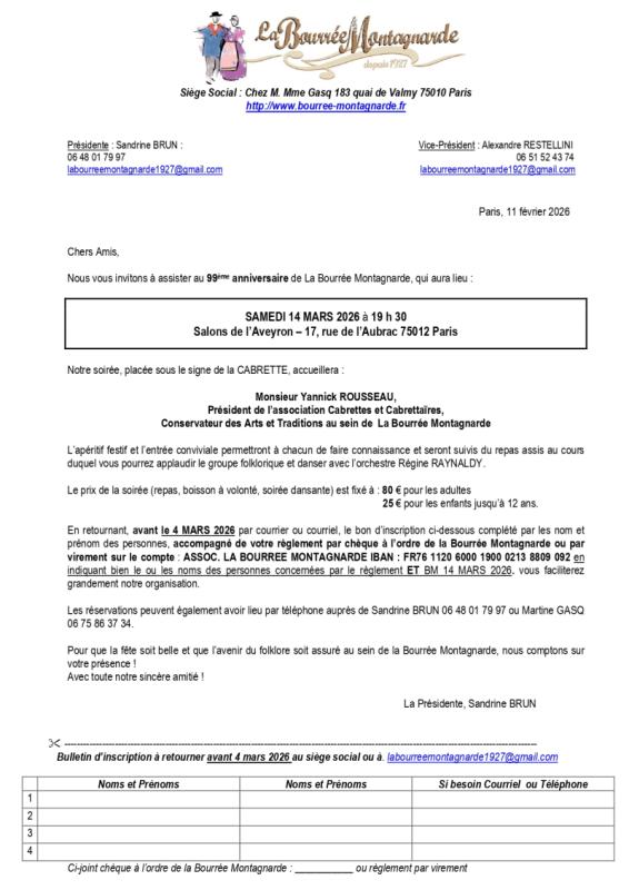 Pour que la fête soit belle et que l'avenir du folklore soit assuré au sein de la Bourrée Montagnarde, nous comptons sur votre présence !