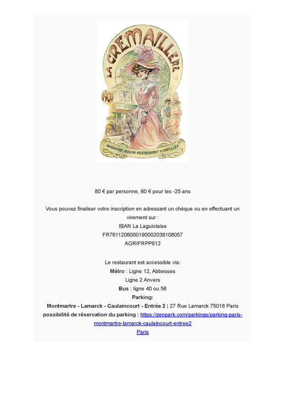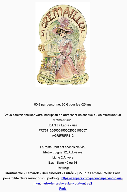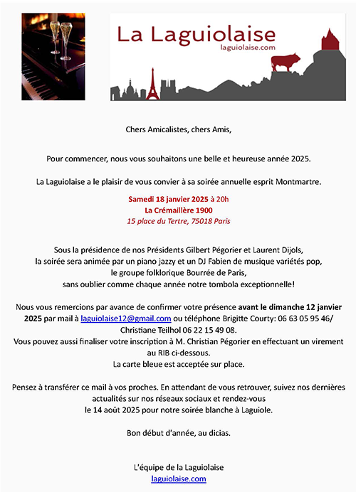 Amicale La Laguiolaise : Soirée annuelle esprit Montmartre - Samedi 18 janvier 2025 à la Crémaillère
