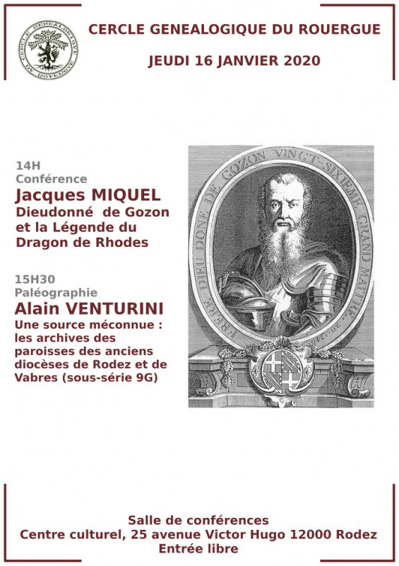 Conférence 16 janvier 2020 à Rodez : Dieudonné de Gozon et la légende du dragon de Rhodes par J. Miquel