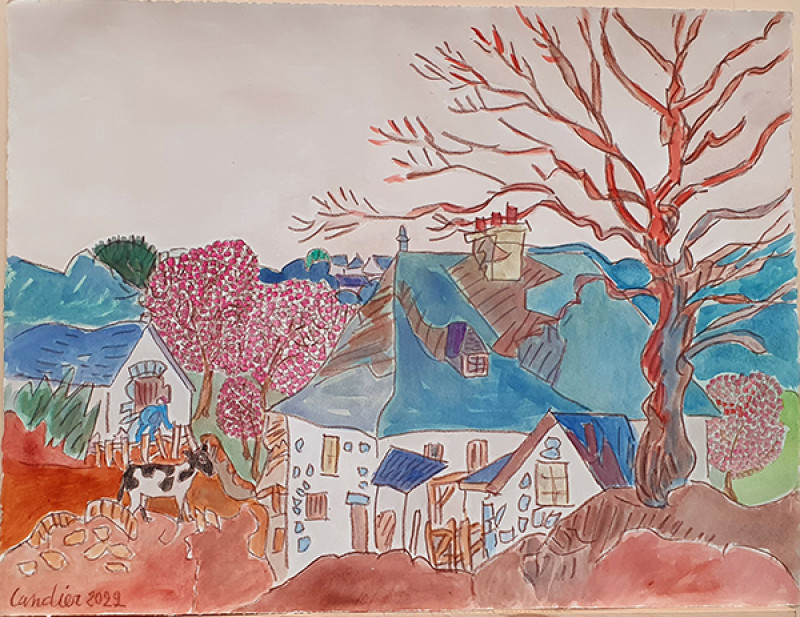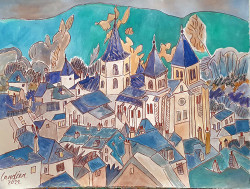 " Douce France" Exposition à découvrir à Montmartre. Henri Landier vous fait découvrir la France et l'Aveyron à travers ses aquarelles. Jusqu'au 25 juin 2023.