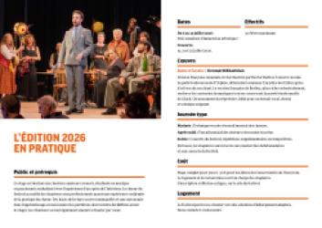 Vous pourrez trouver, en pièce jointe, un descriptif de notre festival dans son premier dossier de presse de l'année, en attendant, pour bientôt, les distributions complètes des spectacles et des concerts et la maquette de la nouvelle affiche, déclinée dans les brochures, les programmes, les bannières, les supports numériques.